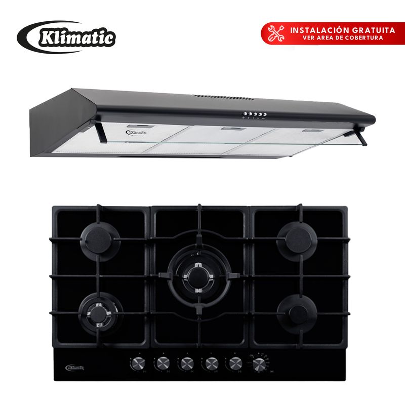 Combo Klimatic Cocina Empotrable 5 Hornillas Aosta 90 Pro + Campana Lineal 90cm CK902NE/M